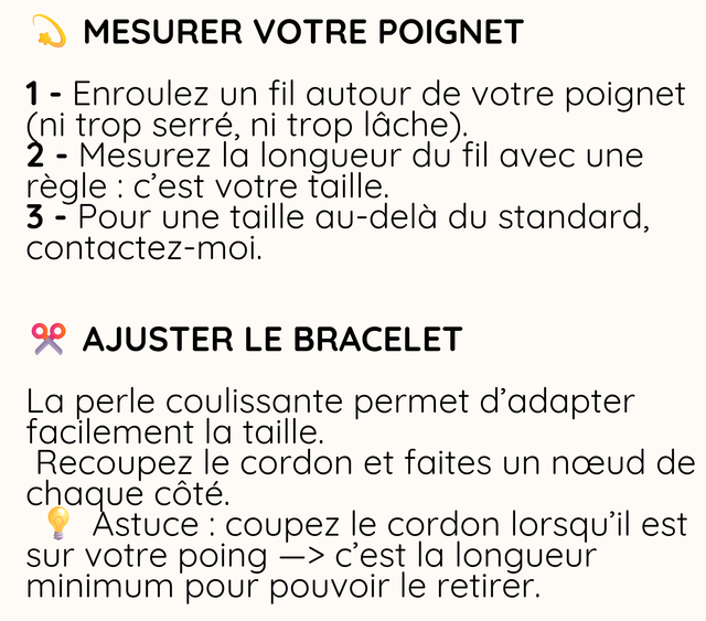 - Système de fermeture : cordon coulissant grâce à la perle