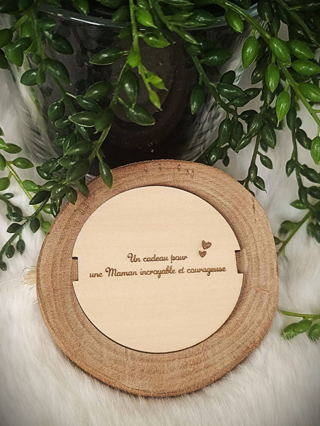 - Possibilité d'ajouter un support en bois avec message (en supplément)